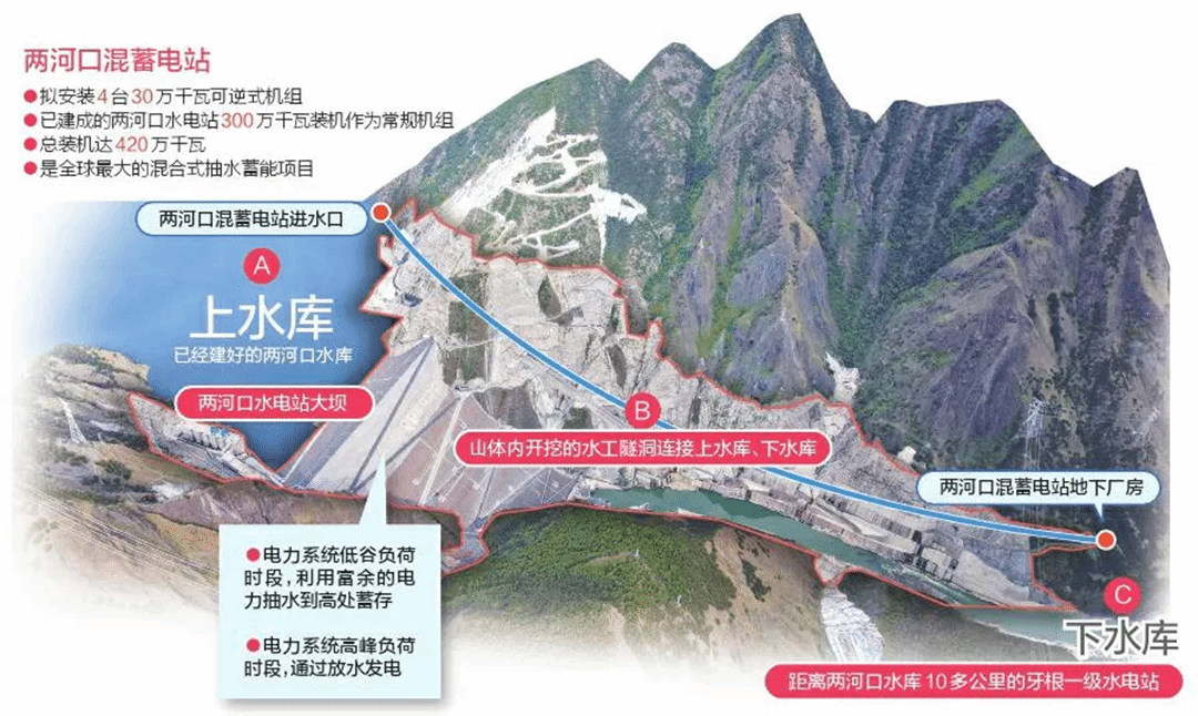 兩河口混合式抽水蓄能電站是目前全球最大、海拔最高,國內水頭變幅最大的混合式抽水蓄能電站,同時也是我國首個核準的大型混合式抽水蓄能電站。電站建設4臺300兆瓦抽水蓄能機組,電機公司承擔其中2臺機組的研制任務。