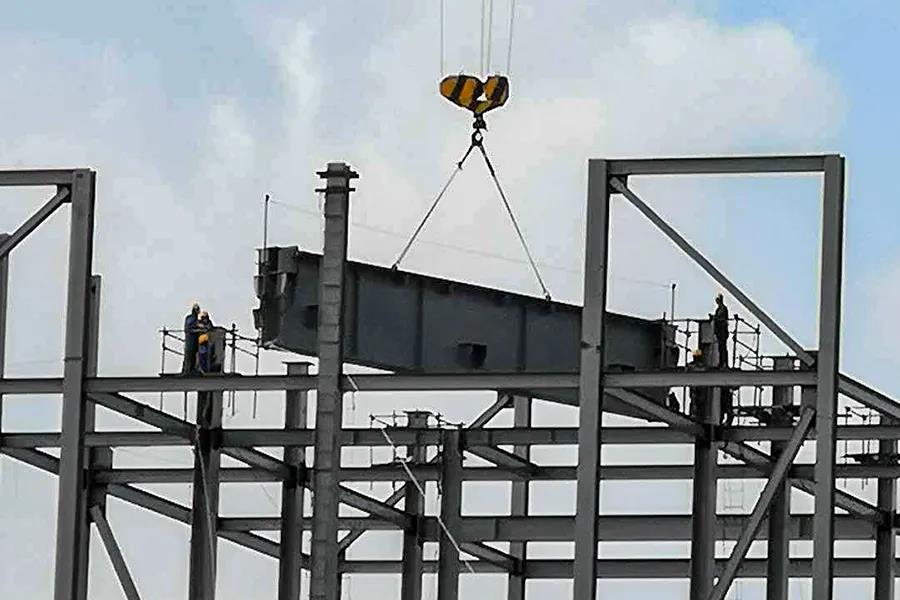 4月3日,鍋爐大板梁一次吊裝成功。