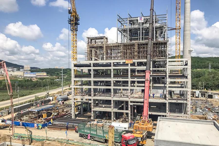 2019年11月18日,鍋爐鋼結構吊裝完成。