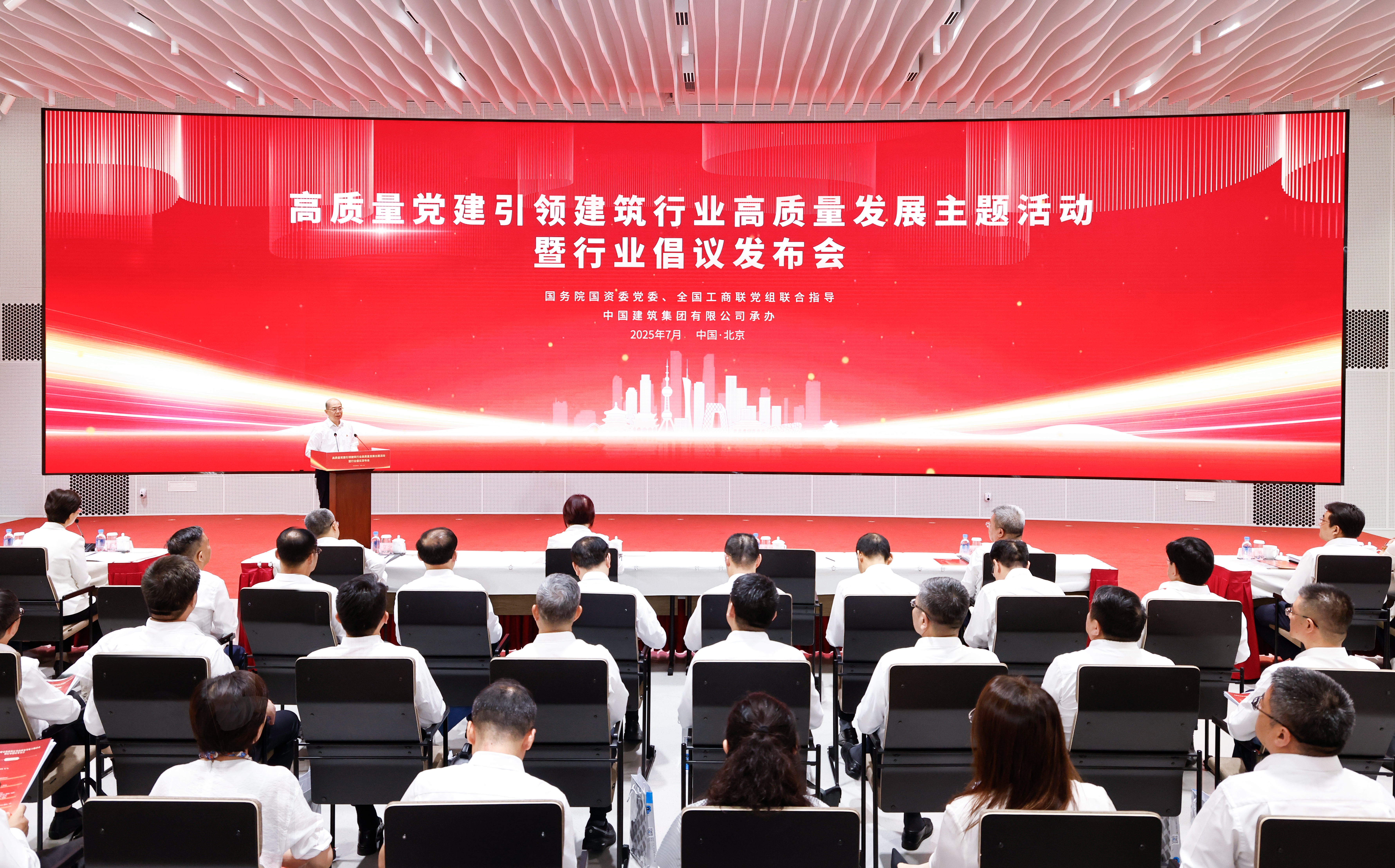 7月7日,國務院國資委黨委和全國工商聯黨組共同在京舉辦高質量黨建引領建筑行業高質量發展主題活動暨行業倡議發布會,深化拓展中央建筑企業黨建提質增效工作,從黨的領導、黨的建設著手助力和引領行業轉型。國務院國資委黨委委員、副主任譚作鈞,全國工商聯黨組成員、副主席汪鴻雁出席會議并講話。
