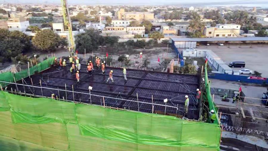 濱佳勝三期廠外開關站場地小、接口多、要求嚴、工期緊。為確保濱佳勝三期項目廠外KTPS和Landhi變電站GIS室頂板澆筑的重要關鍵任務目標順利完成,在施工前,哈電國際濱佳勝三期項目團隊精心策劃,對頂板澆筑前現場安全進行了聯合大檢查,并與業主、監理、施工單位多次召開施工交底會,統籌規劃,科學安全安排施工工序。在施工過程中,哈電國際濱佳勝三期項目團隊克服當地高溫天氣帶來的不利影響,統一指揮,協調土建分包商和混凝土供應方,隨時保證人員與機具滿足施工需要,經過5小時作業圓滿完成濱佳勝三期廠外開關站重大節點。